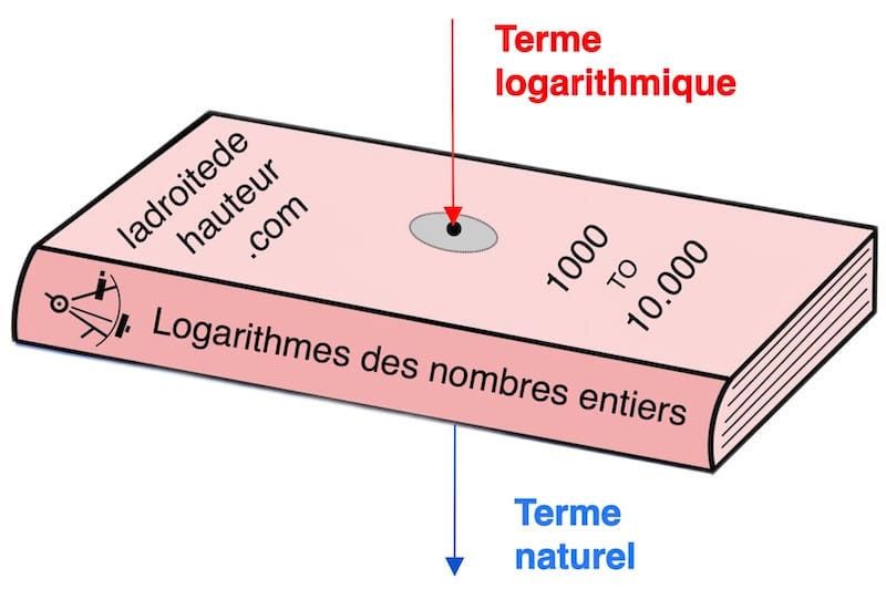 On commence par transformer les valeurs naturelles en valeurs logarithmiques à l’aide des tables de logarithmes. Ainsi, les multiplications deviennent de simples additions de logarithmes.