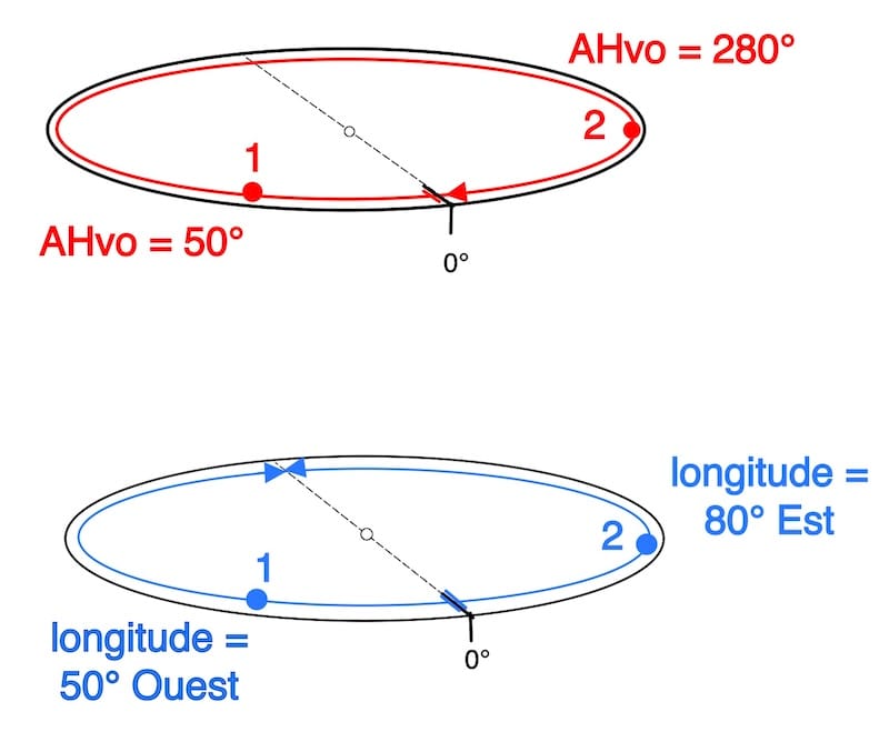 ⇒ Longitude Ouest = AHvo