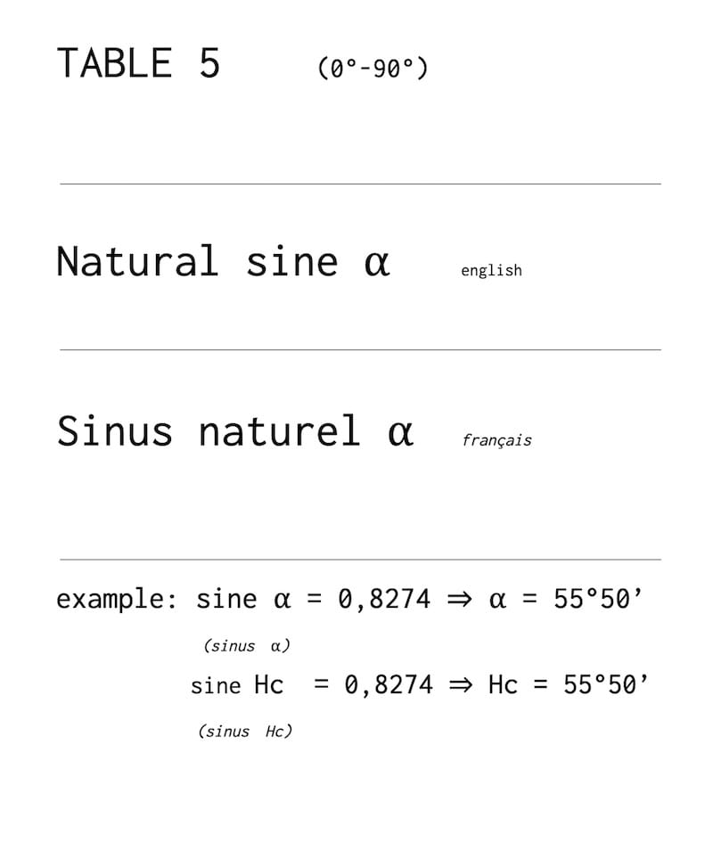 Log sinus verse 42° 15′,1 l’angle au pôle